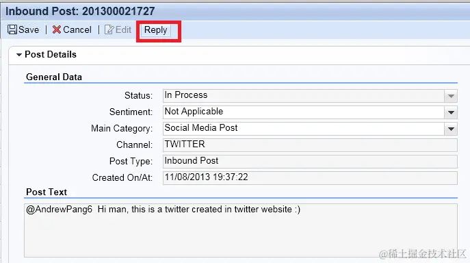 select the first row and I can directly reply it in CRM by clicking reply button: