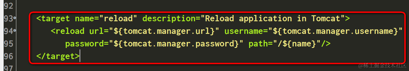 <reload url="${tomcat.manager.url}" username="${tomcat.manager.username}"