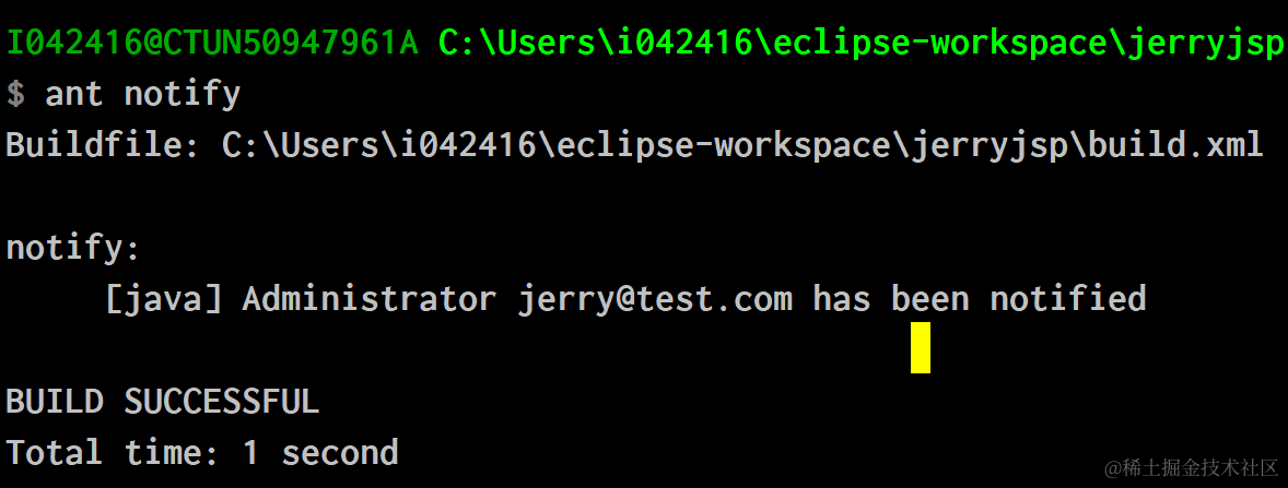 ant notify, 命令行的输出: