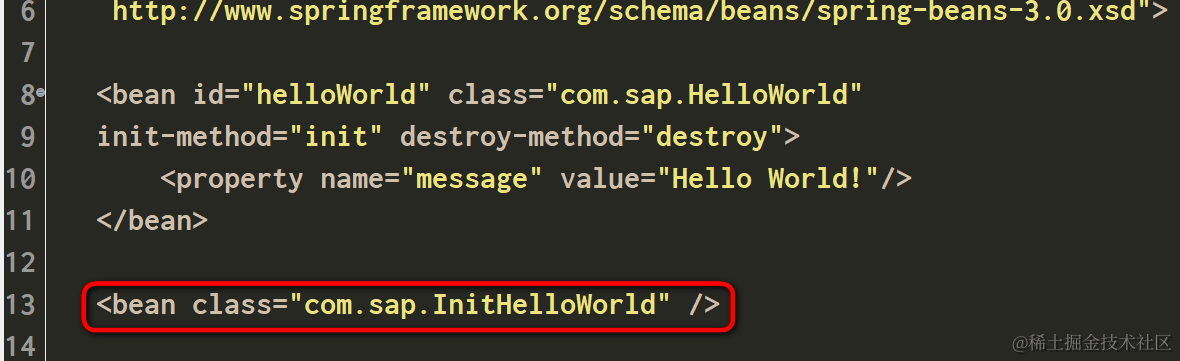 <bean id="helloWorld" class="com.sap.HelloWorld"