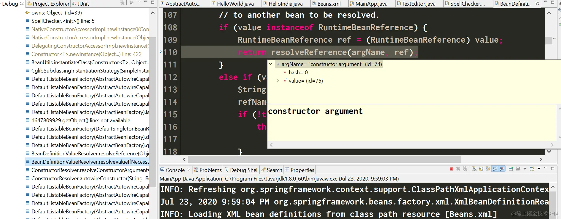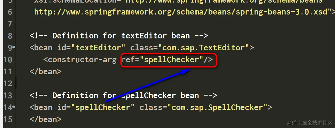 <constructor-arg ref="spellChecker"/>