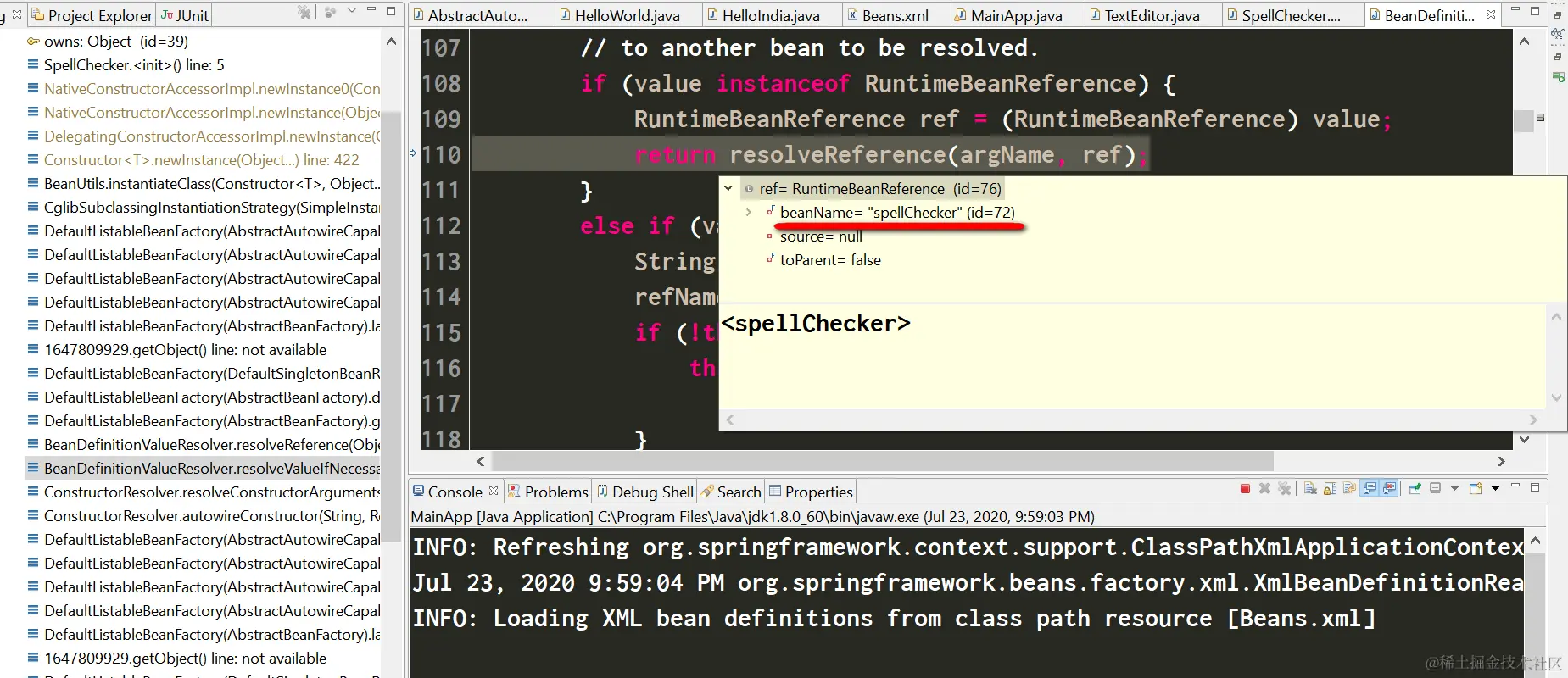 因此SpellChecker实例也被创建出来了: