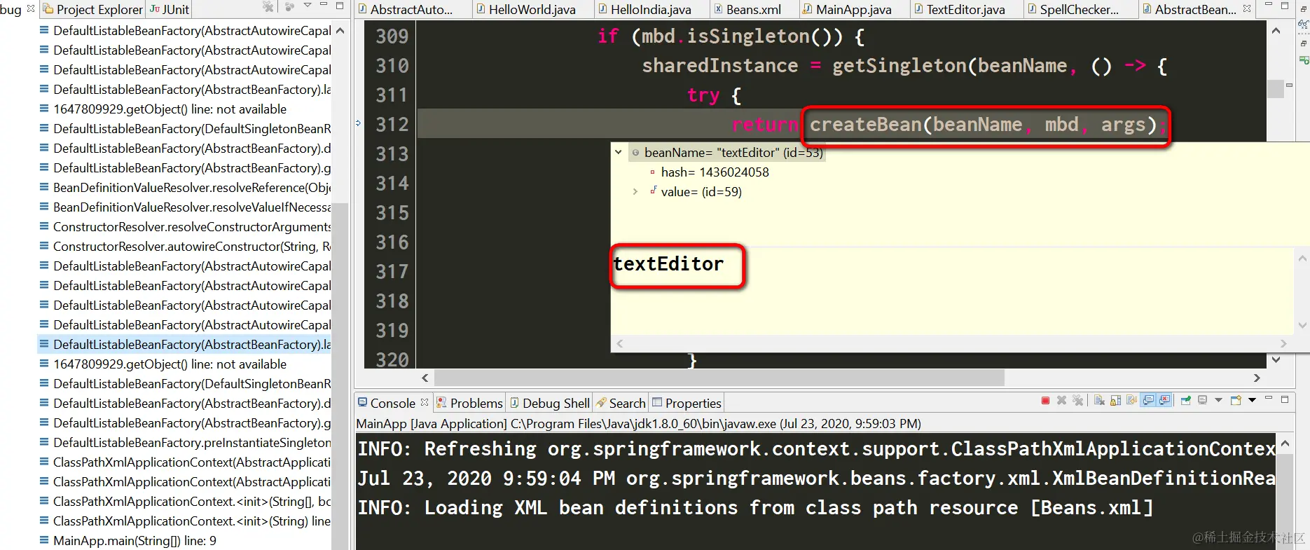 创建TextEditor bean实例: