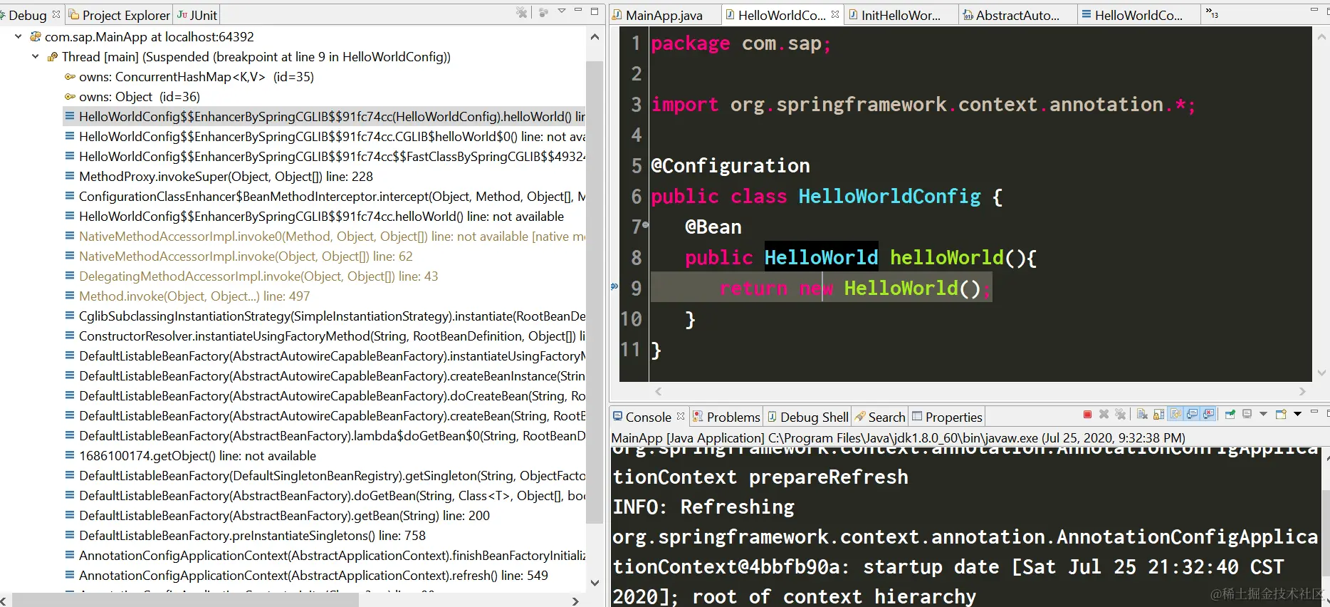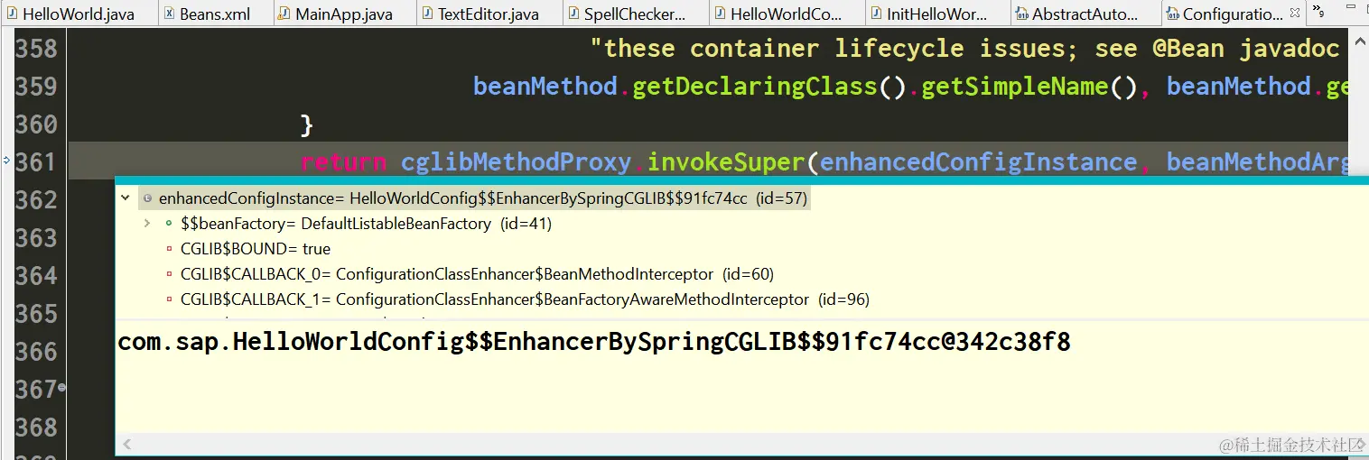 这个HelloWorldConfig是被SpringCGLib动态增强过的: