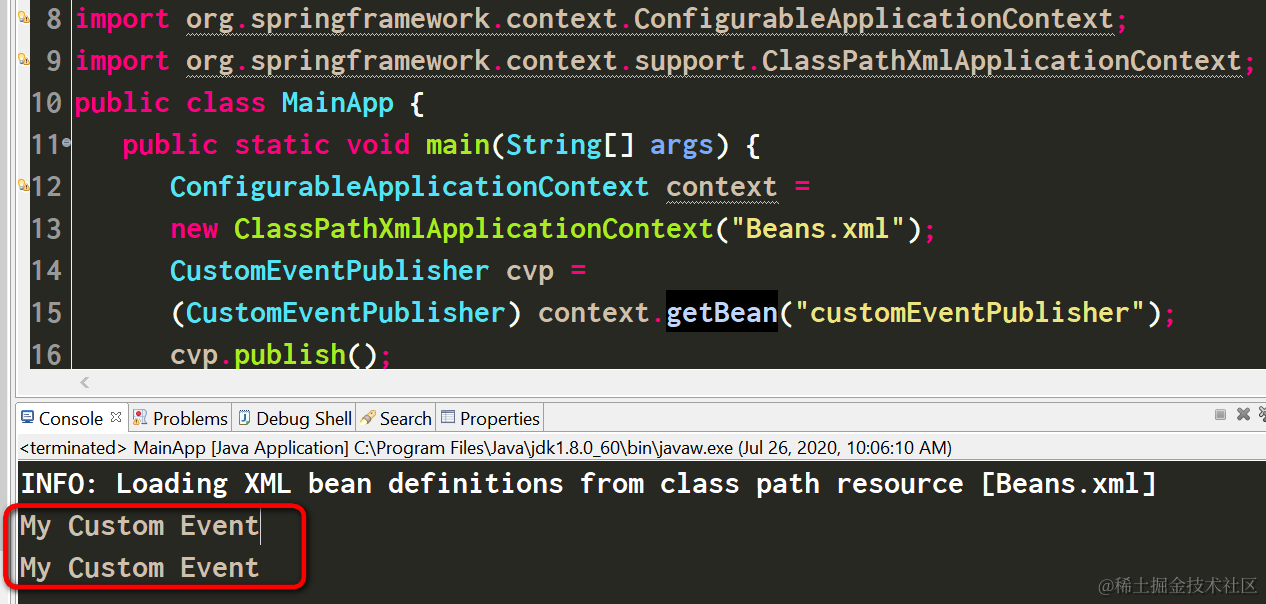 (CustomEventPublisher) context.getBean("customEventPublisher");