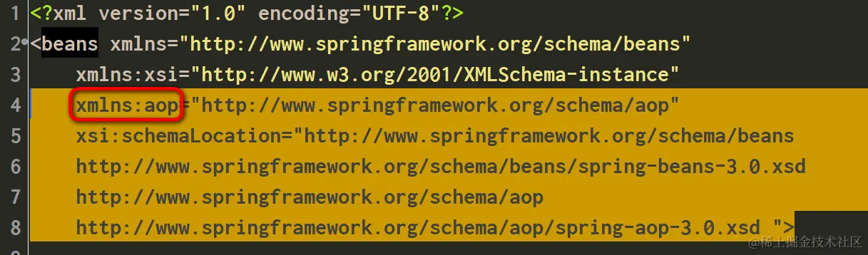 (1) 定义aop的命名空间:
