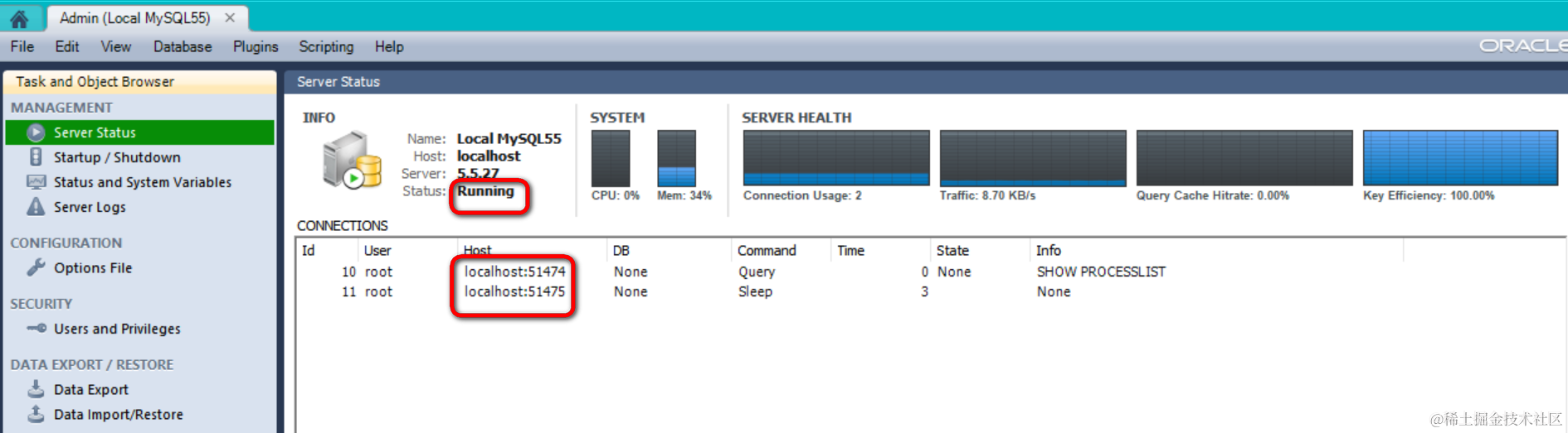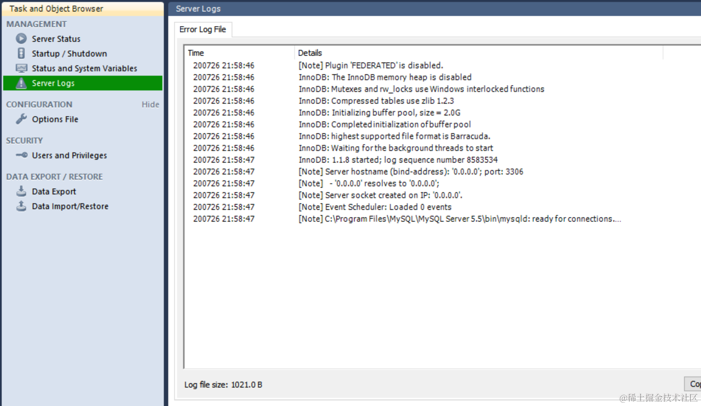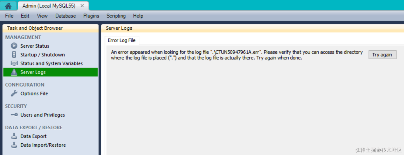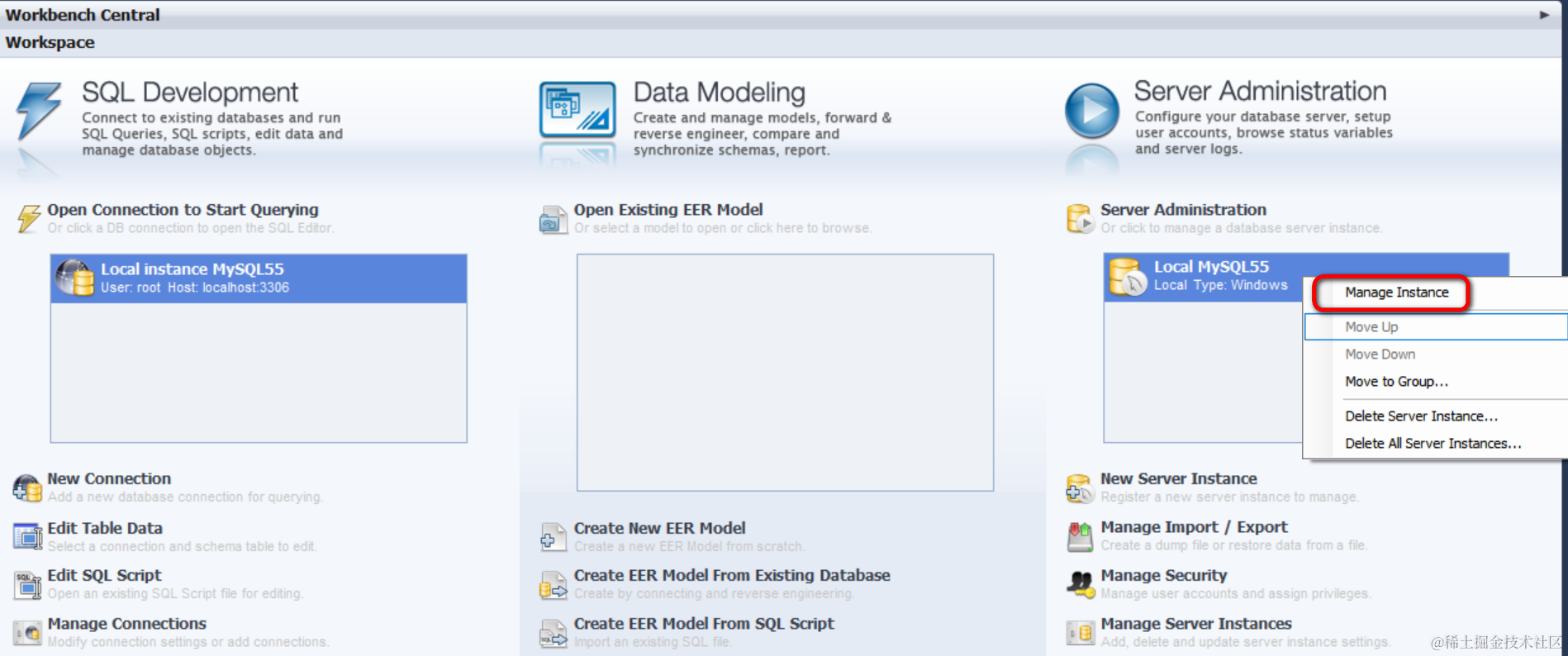 我安装完了MySQL社区版之后,在Workbench Centra的server Administration中点击Manage Instance: