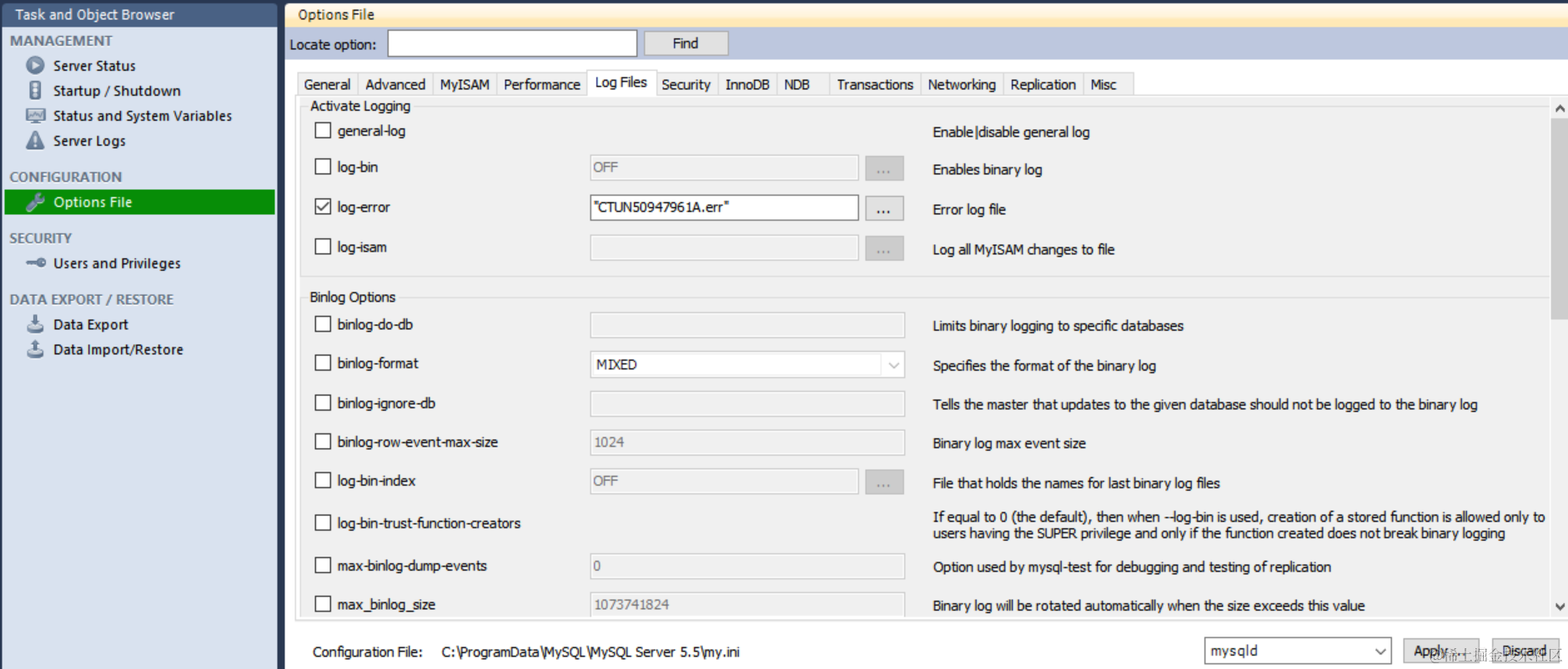 在Configuration->Options File里,更改日志文件的位置,问题即可解决: