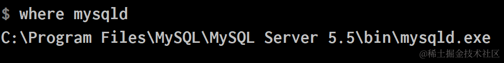 where mysqld即可查询到mysqld.exe的具体位置: