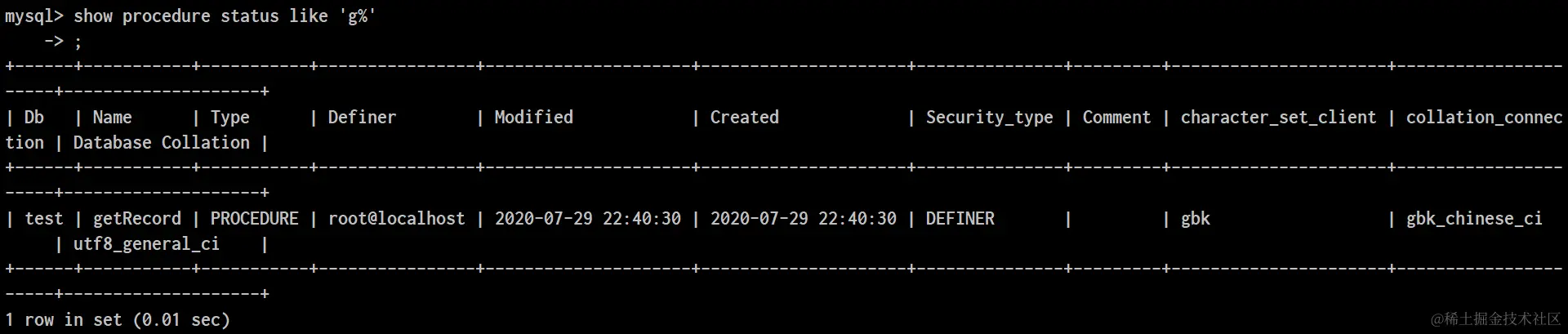 存储过程创建完毕后,用如下的命令行查询其状态: