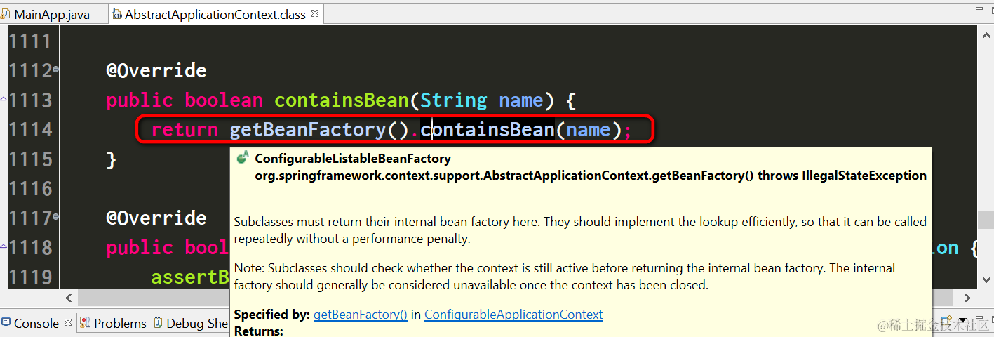 这个containsBean方法定义在AbstractApplicationContext里: