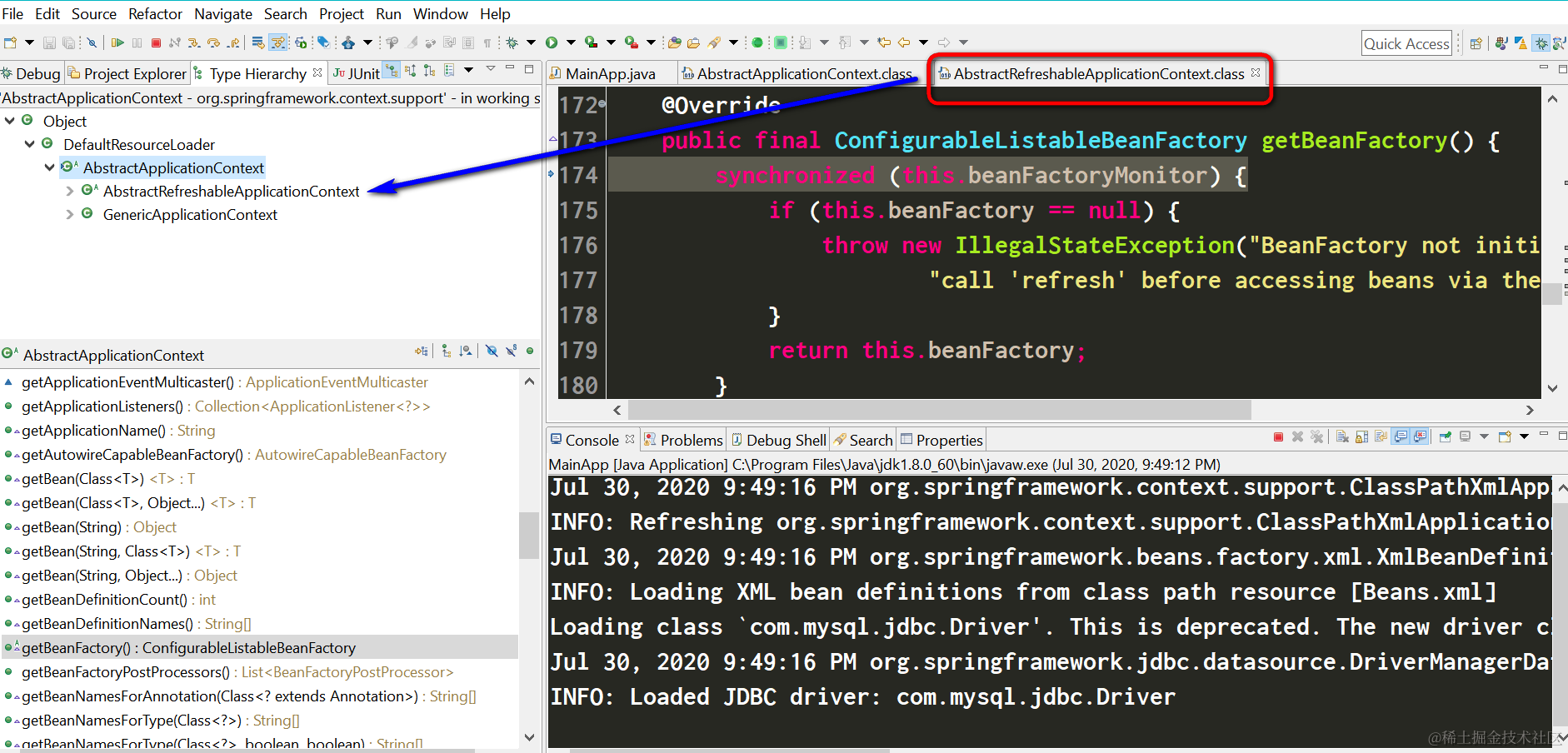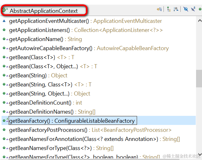 而getBeanFactory的实现,位于AbstractRefreshableApplicationContext里: