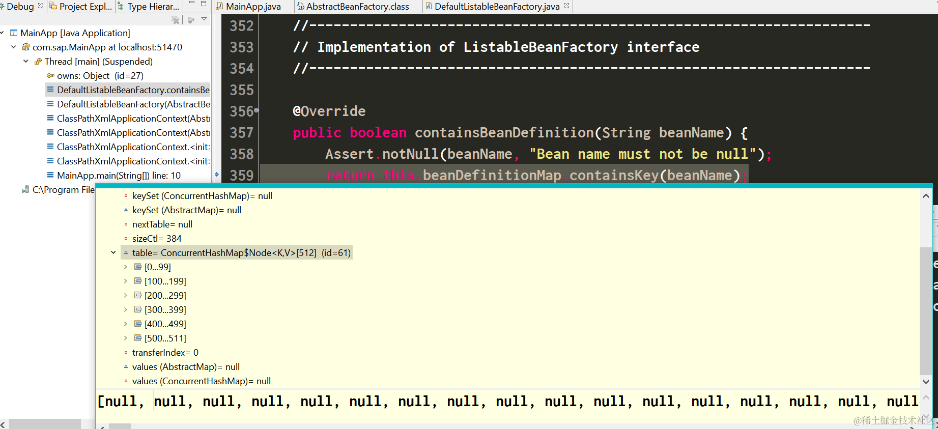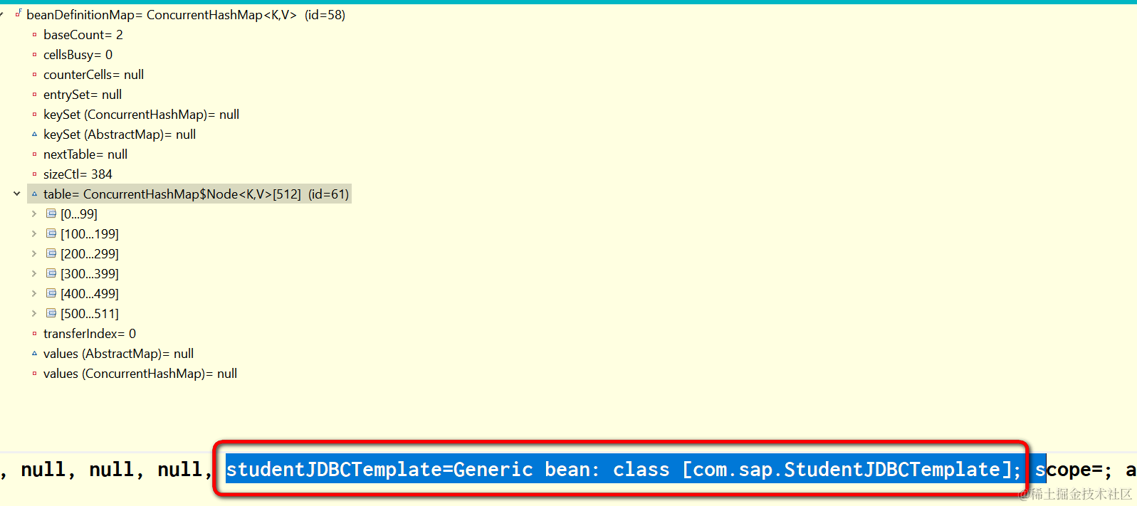我在Beans.xml里定义的bean就存储在这个hashmap里,因此最后context.containsBean返回true: