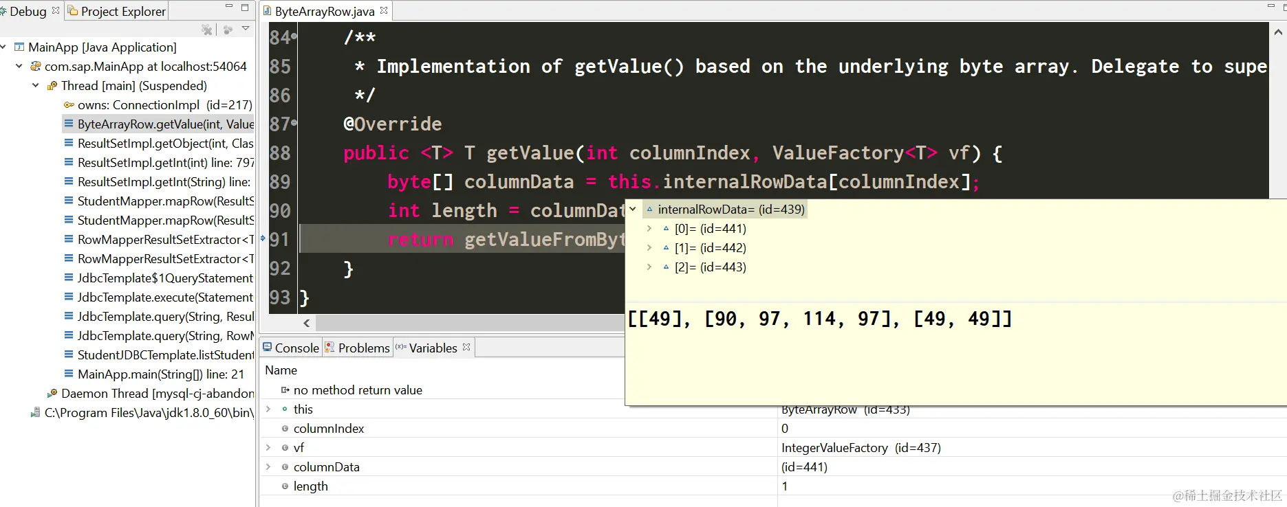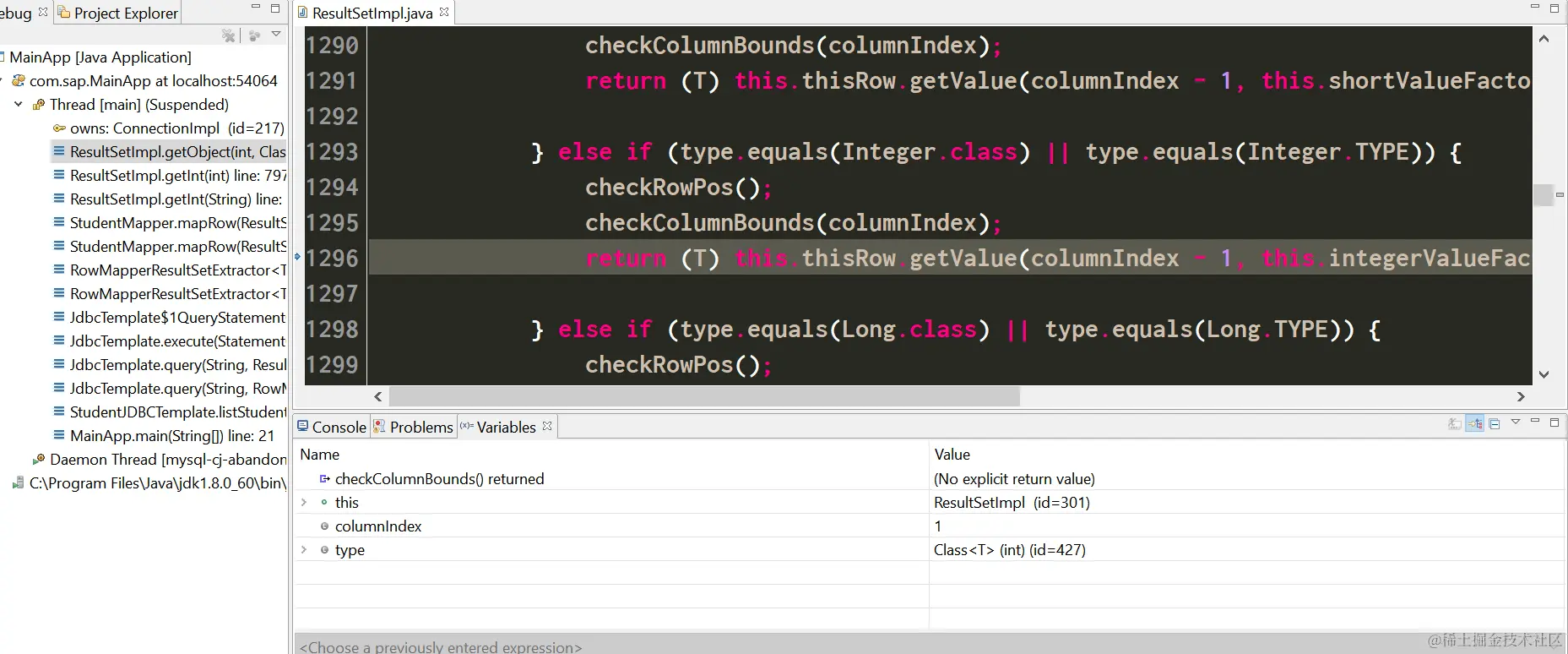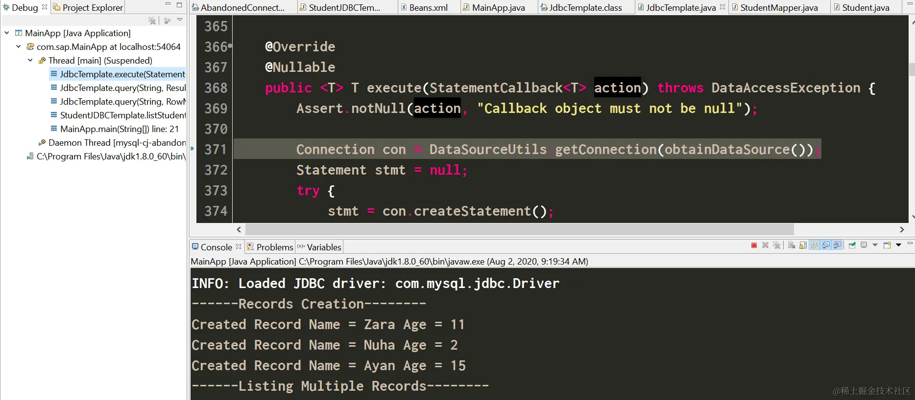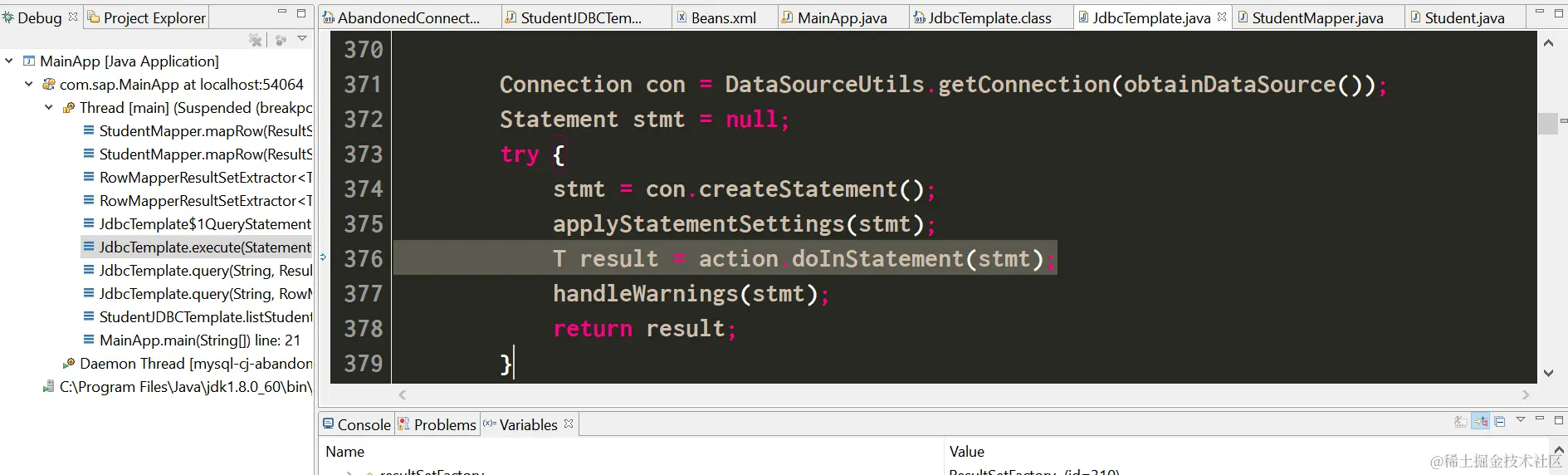 具体执行逻辑,和ABAP的ADBC原理类似,首先获得数据库连接: DataSourceUtils.getConnection