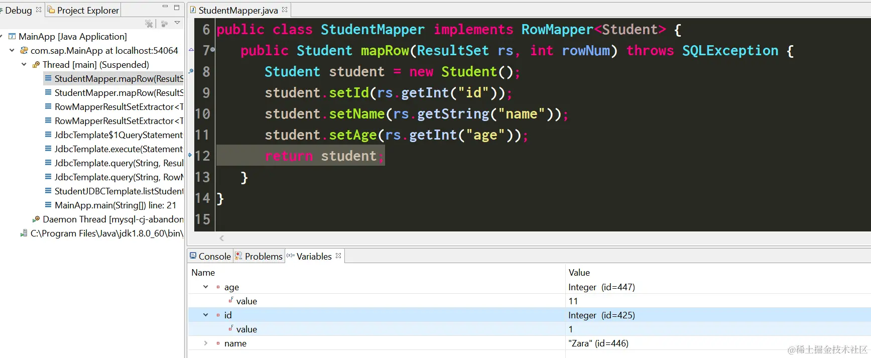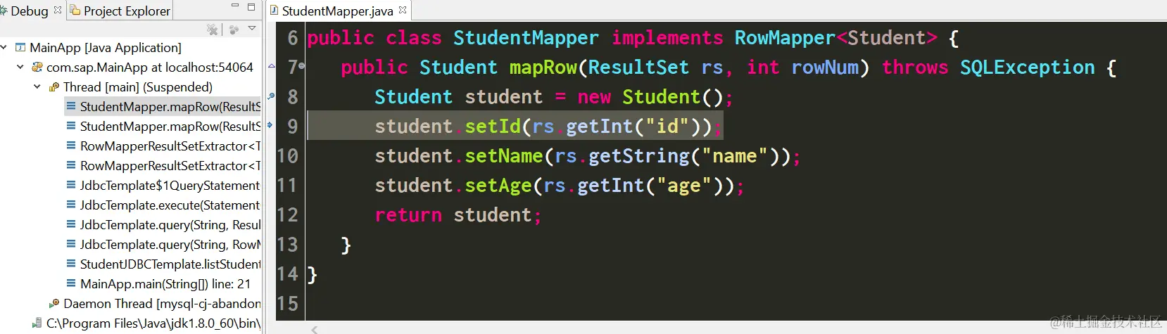 我们应用程序里定义的RowMapper是在一个while循环里被回调的: