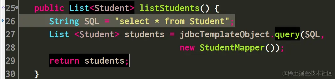和创建接口不同,批量读取需要给Java layer返回数据,所以需要一个Mapper:StudentMapper