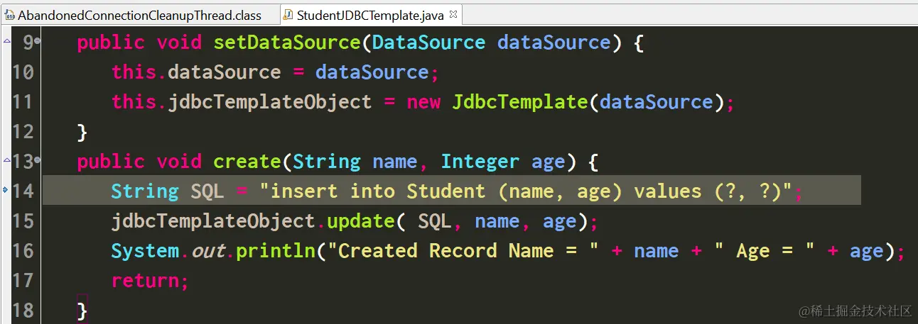create方法:用字符串拼接构造一个SQL命令:“insert into Student (name, age) values (?, ?)”