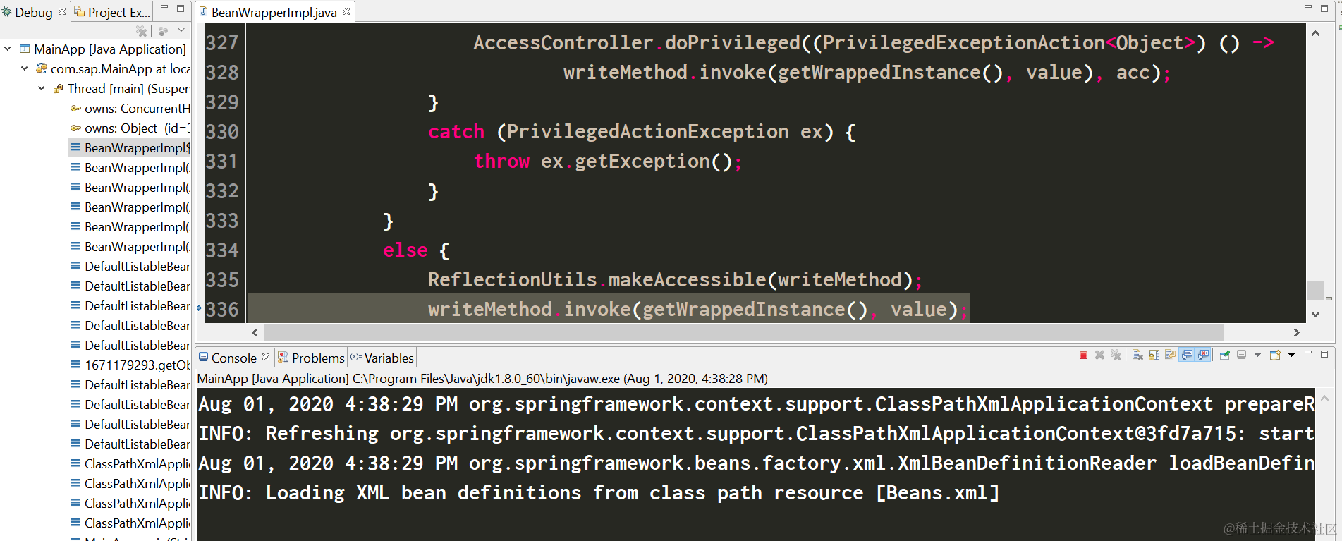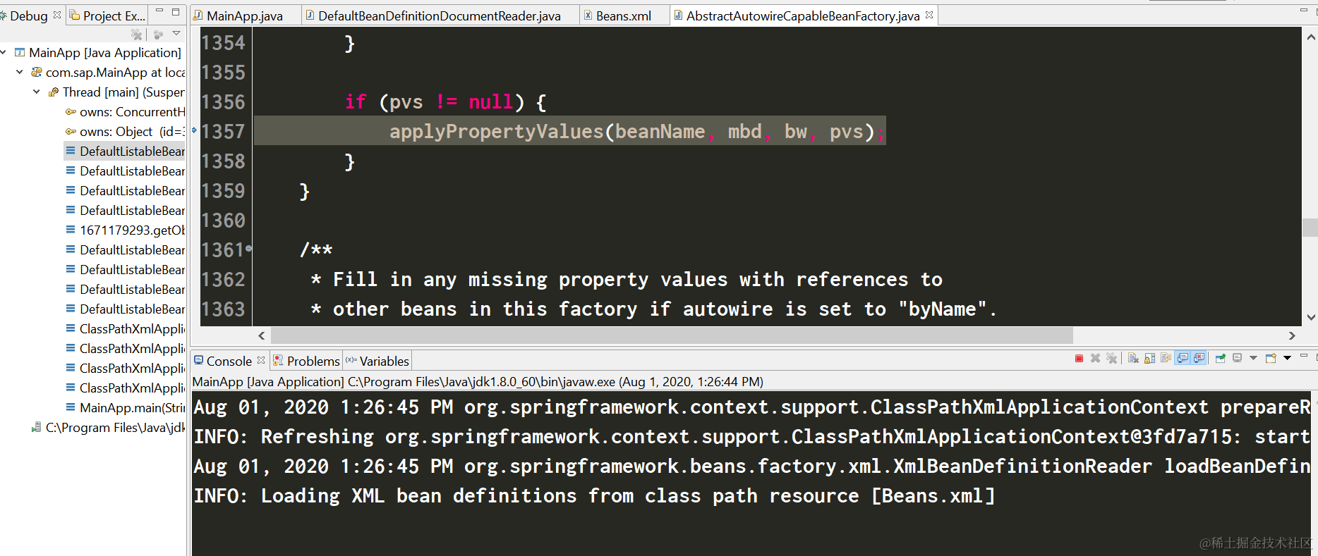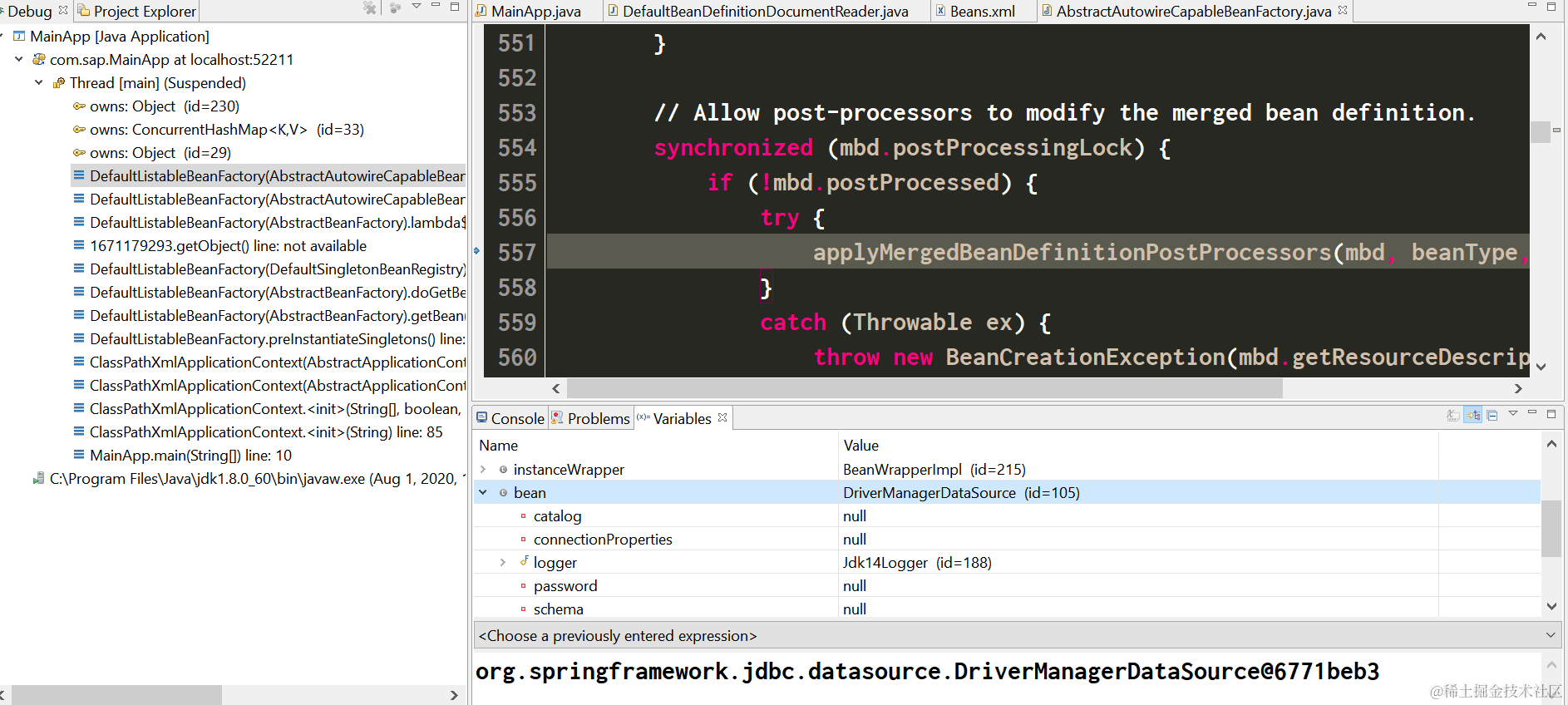 一旦populateBean方法执行完毕之后,Loaded JDBC driver:com.mysql.jdbc.Drive的消息就打印出来了: