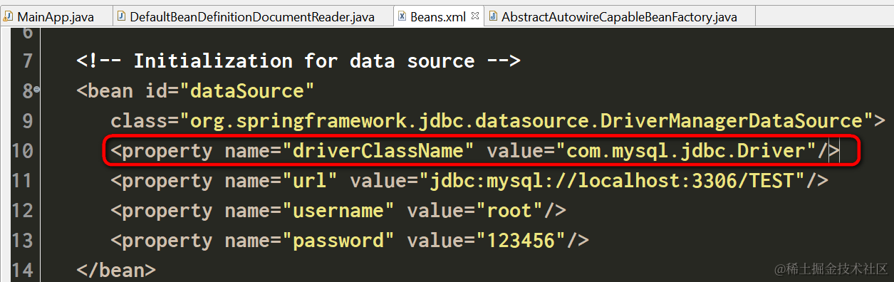 待设置值的实例为:org.springframework.jdbc.datasource.DriverManagerDataSource@1356d4d4