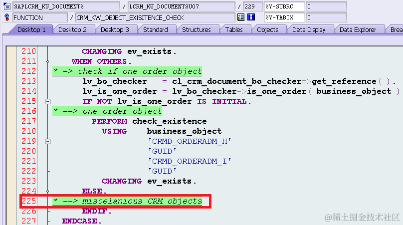 Back to my case, since CRMSOCPOST is a new BOR type created in CRM7.0 EHP3, the function module does not recognize it, so the code reached line 225, and