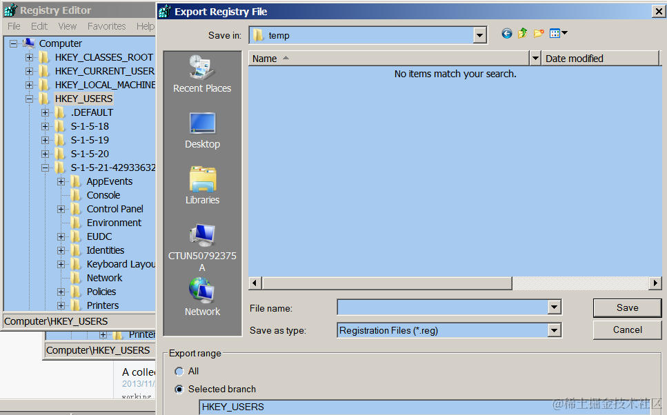 You can use File->Export to export the node HKEY_USER and its children: