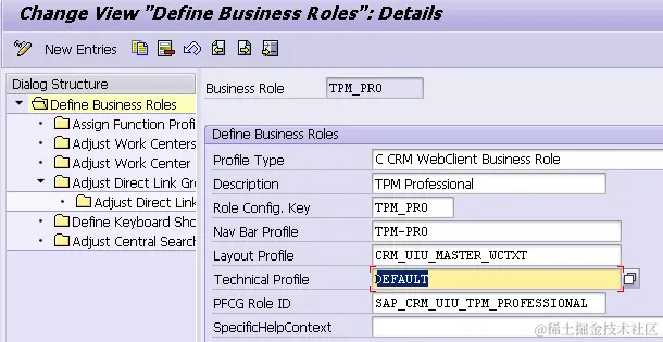 Suppose I log on to UI via business role TPM_PRO, which has DEFAULT as the technical profile: