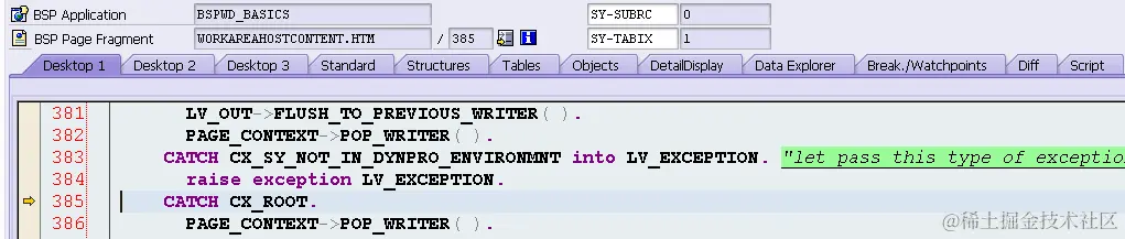 I am 100% sure that there must be some exception occurred in the backend and caught by framework, but unfortunately without any message raised out in UI. So I use the tip described in my blog to start debugging. Several minutes later, I felt really frustrated since the breakpoint for ABAP keyword CATCH is triggered so frequently in UI framework processing. I was completely lost in the debugging. ( At that time I didn’t try conditional breakpoint group since I am not sure whether it could help)
