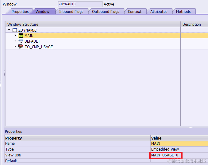 the interface view exposed by component ZDYNAMICUSAGE. Then we use API prepare_dynamic_navigation to create a navigation link dynamically, from host view in component ZDYNAMIC to the interface view of component ZDYNAMICUSAGE. The component usage name stored in attribute gt_usage_name in step 3 will be used during API call. Finally fire the outbound plug of MAIN view to make the embedded view displayed in UI.