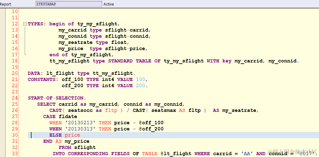 (3) The logic to determine the flight price in the example shows that we could define some application logic in open SQL statement.