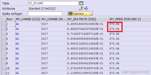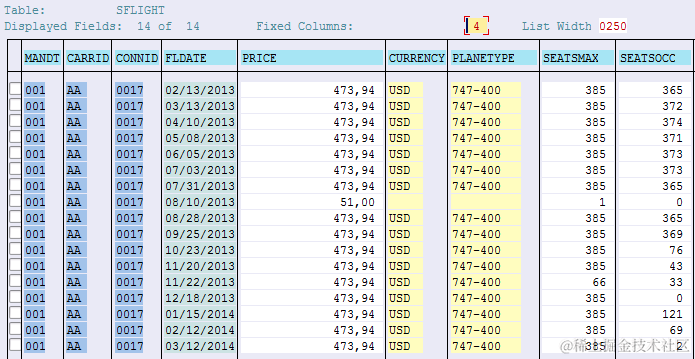 The content of internal table lt_flight is listed below. We observed that the price for the 2013-2-13 and 2013-3-13 is reduced correctly, also the seat occupation percent.