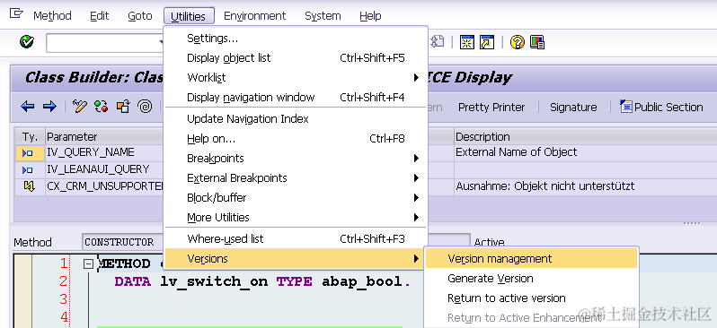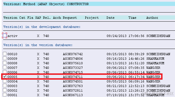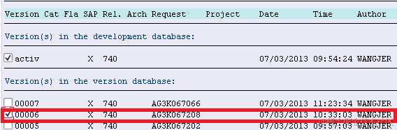 The version number (5) and transport request number(AG3K074711) could also be reviewed in class builder menu Utilities