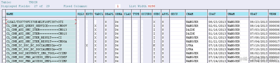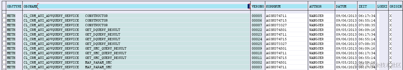 Each entry of list contains a corresponding transport request number ( in column KORRNUM )