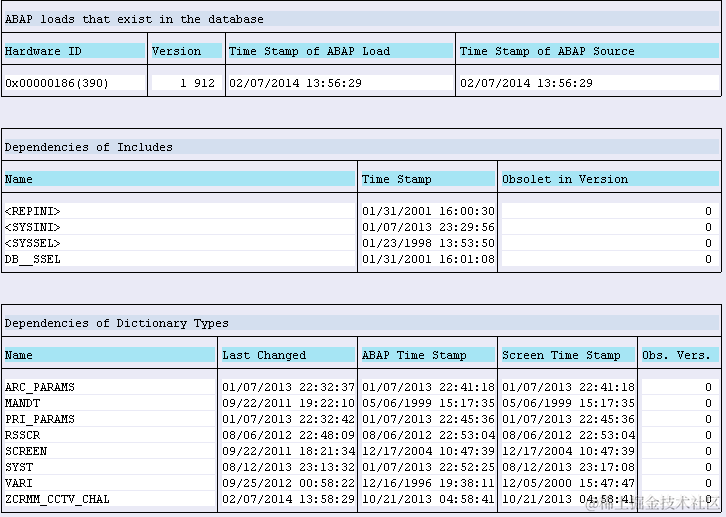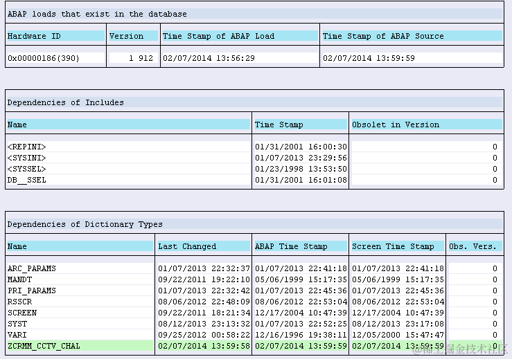 it returns the result as below. In the first part we see the timestamp of ABAP load and ABAP source are both initial one when I activate the report.