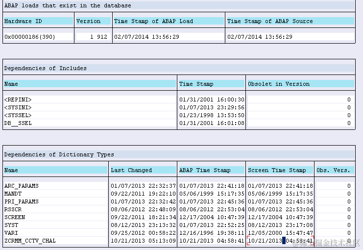c. The ABAP timestamp and Screen timestamp of database table ZCRMM_CCTV_CHAL also changed to the time when I change the table description;