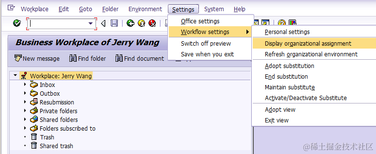 then click “Display organizational assignment”: