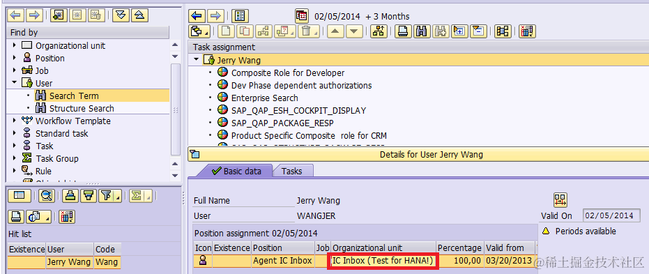 We can still get the same organization unit name “IC Inbox ( Test for HANA!)” as found in approach1: