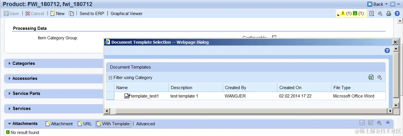 (3) Go to product assignment block, the Create With template button will be enabled. Select the document template we just created: