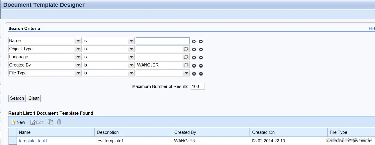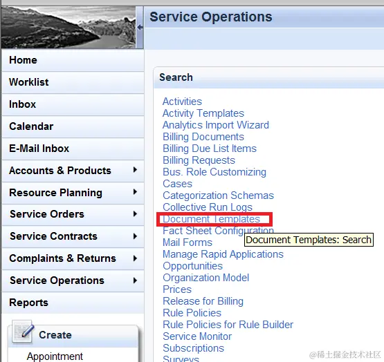 (1) log on CRM web UI via business role SERVICEPRO, work center Service Operations->Search Document Templates: