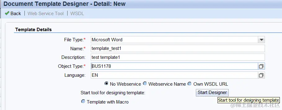 Specify Object type BUS1178 - Product for this document template, click button “Start Designer”: