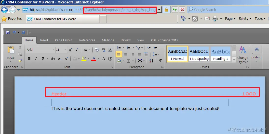 Then a new ABAP webdynpro pop up window appears which preloads the document template with Header and Logo area just created in step2: