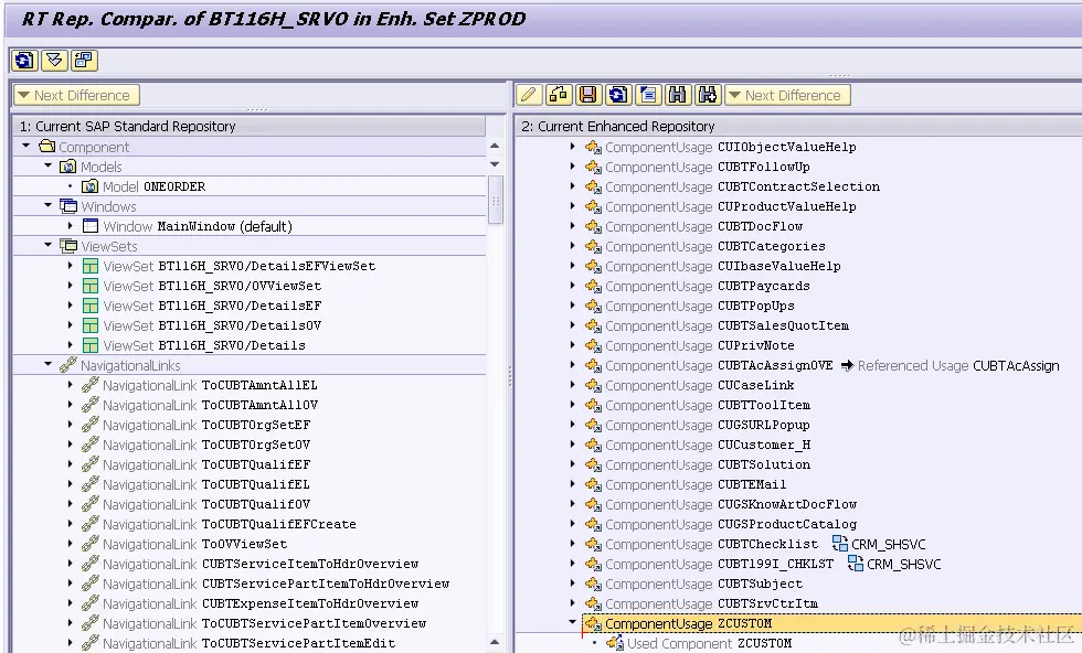 This customizing activity could allow us to compare the runtime repository between the original UI component and the enhanced one:
