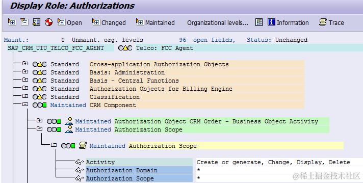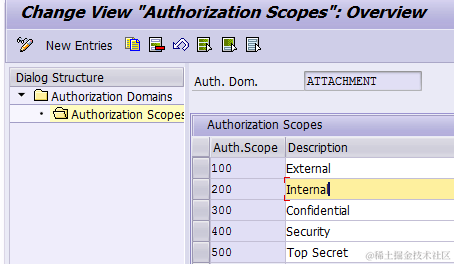 The result indicates that my user in our dev system has authorization to create, display, change and delete on attachments belonging to any authorization domain & scope.