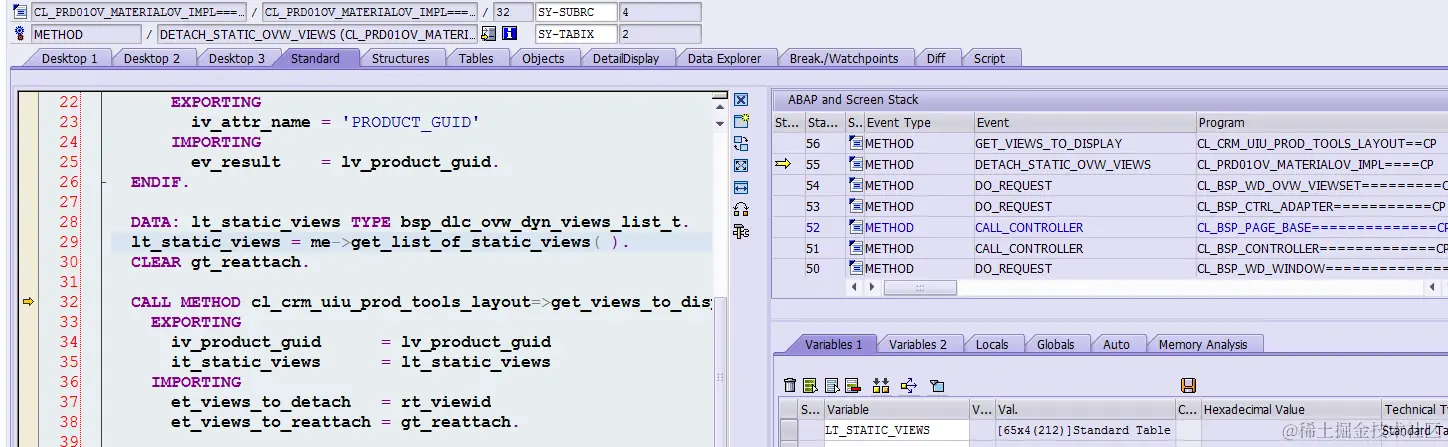 Set a breakpoint on CL_PRD01OV_MATERIALOV_IMPL->DETACH_STATIC_OVW_VIEWS , open the product overview page again: