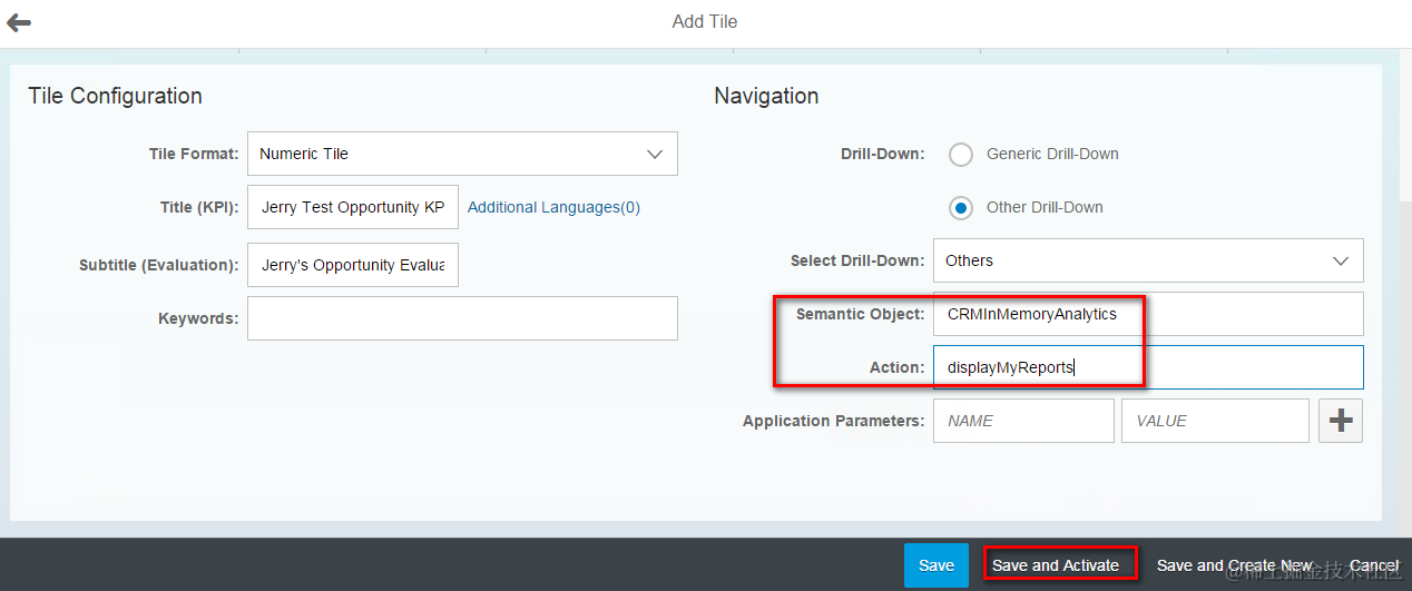 Specify the following Semantic Object and Action, so that in the runtime when this tile is clicked in Launchpad, the SAP standard Fiori application “Customer Report” will be opened, which acts as the container to display the HANA Query view configured in the KPI.