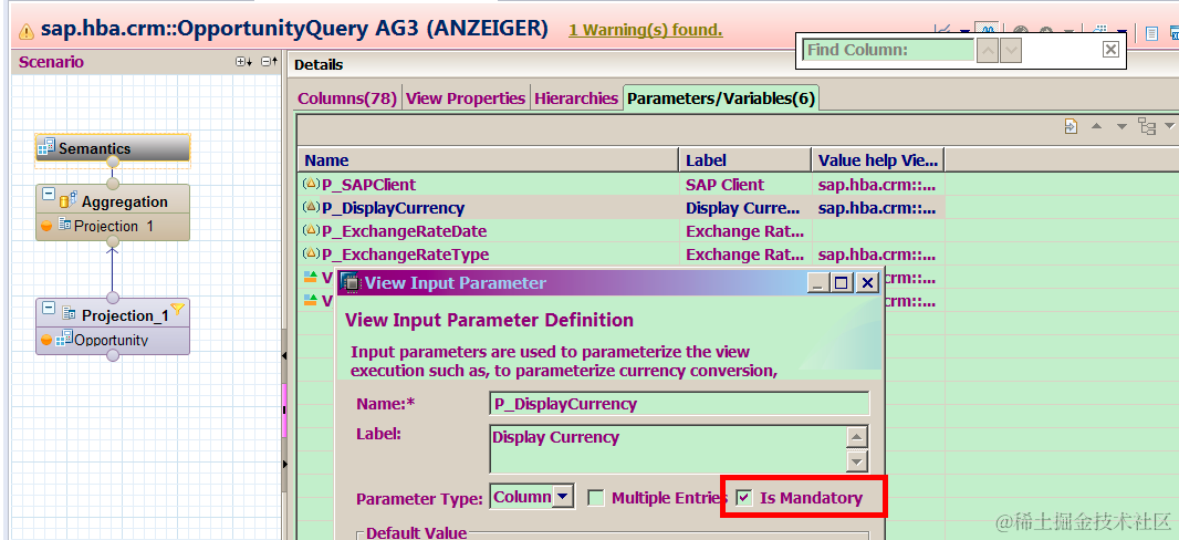 You may ask where does the definition of these four parameters come from, actually they are just defined in the underlying HANA view in HANA studio, as mandatory.