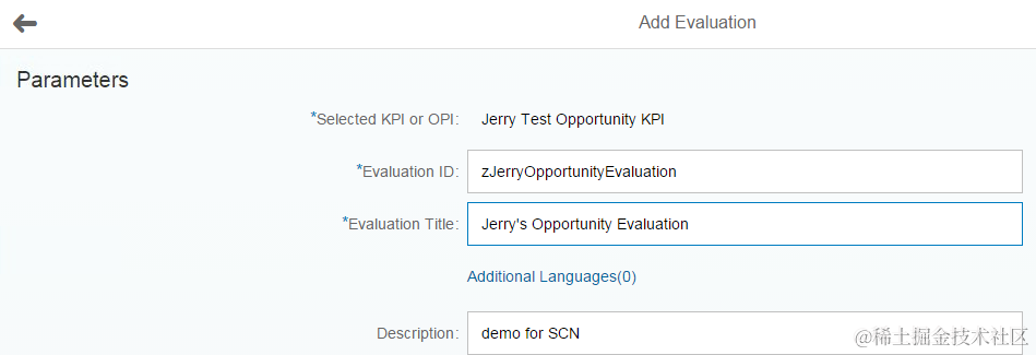And for evaluation, we need to specify four mandatory parameters: