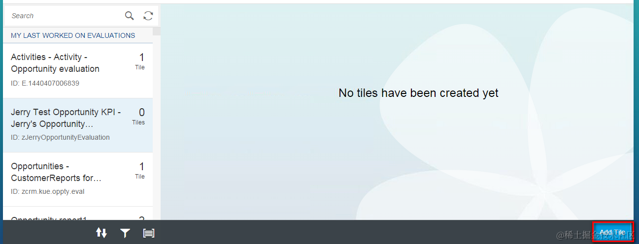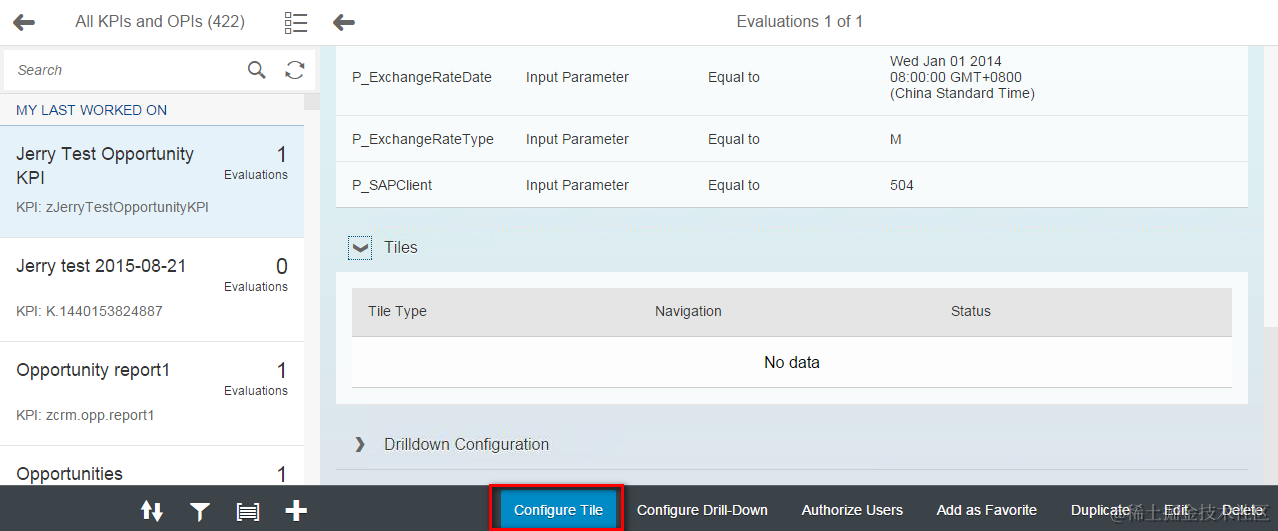 (4) Open your evaluation just created in previous step, click “Configure Tile”: