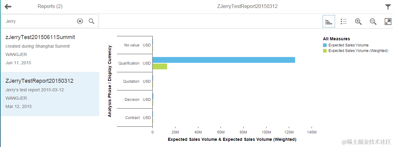 If you click the tile, all CRM WebUI reports created based on the HANA odata serviceOpportunityQuery would be displayed in the left part list. By selecting one of them you can navigate to report drill-down detail page.