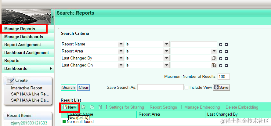 create a new HANA live report:
