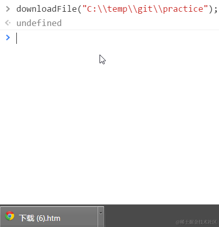 (2) Open Chrome development tool, type the command like below. There is a notification poped up by Chrome, asking you if you allow the file download. Click ok. Then a html file is automatically downloaded by Chrome.